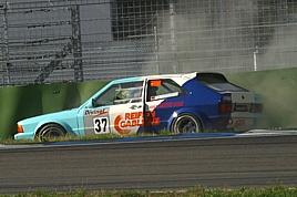 | Henning Pape fuhr sich mit seinem Klassensieg übrigens noch mal gekonnt in Titelnähe. Für Lothar Moll war Hockenheim ein Weekend zum Abhaken. Die Technik machte dem Bonner Probleme. Sven Fisch verbesserte seine Titelchanchen durch den trotz Krankheit erkämpften Klassensieg. Und Klaus Horn gelang es durch seinen Gesamt- bzw. Klassensieg auch eine Hand in Richtung Divinol-Cuptitel zu strecken. Aber alles ist offen. erst das letzte Wochenende wird die Entscheidung in der 14. Divinol-Cupsaison bringen. Unglücklich traten die Wintergerst’s die Heimreise ins schöne Lenggries an. „Ang’schoben ham’s mich“. So Wolfgang nach dem Rennen. Dabei lud er mit Hilfe seiner Gattin, die mit dem Auto das Finale bestreiten wollte, den schwer beschädigten Wagen auf. | ![]() |